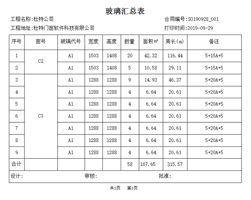 下單大樣圖報表、匯總 表、成本報表、出材率、 玻璃報表等一鍵生成