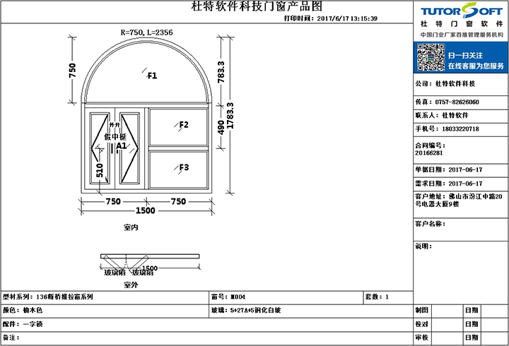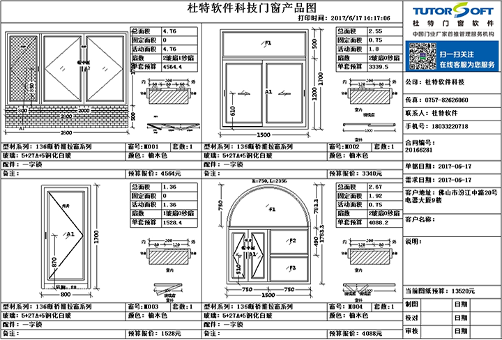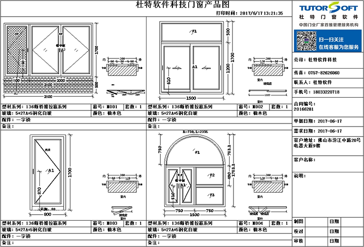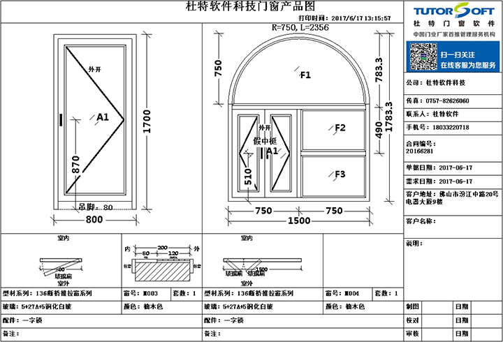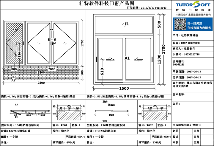 設計門窗后可選擇內外雙色,可選擇彩色打印或選擇預覽報表發送給客戶確認