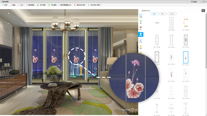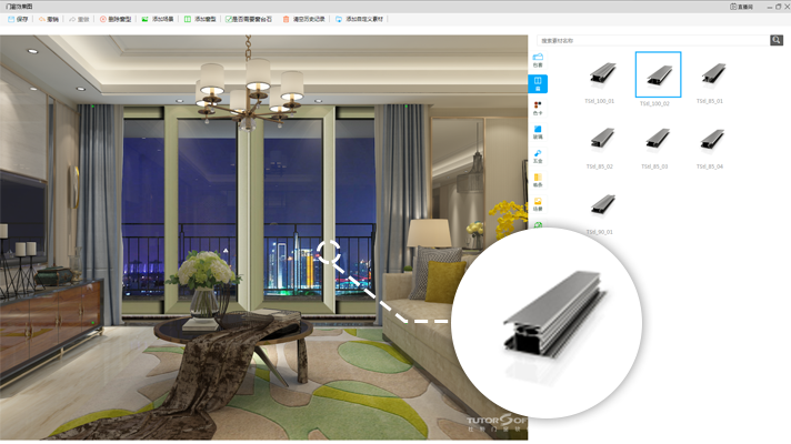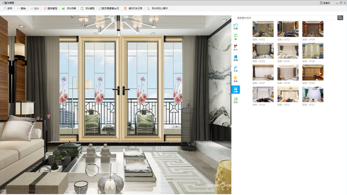 內(nèi)置門窗常用色卡,鎖具等配套素材,用戶可以直接選擇使用,搭配門窗效果更佳